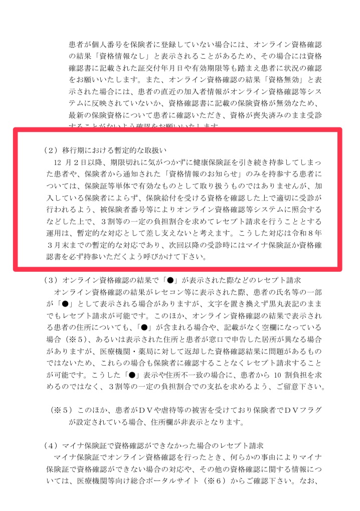 - ※厚生労働省・関連団体向け事務連絡「マイナ保険証を基本とする仕組みへの移行について(周知)」より抜粋